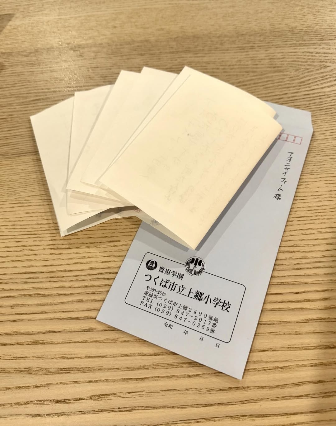 上郷小学校の子どもたちから、先日の地域探求のお礼の手紙を先生を通じていただきました。 一人ひとりの手紙には温かい言葉がたくさん書かれていて、「またアオニサイファームに行きたいです!」という嬉しいメッセージも多く、とても励みになりました。 今回の地域探求が、子どもたちにとって地域や仕事を知る学習につながり、そして楽しい時間にもなっていたのであれば嬉しく思います。 これからもアオニサイファームが、地域の皆さんに楽しんで喜んでいただける場所であり続けられるよう、活動を続けてまいります。
